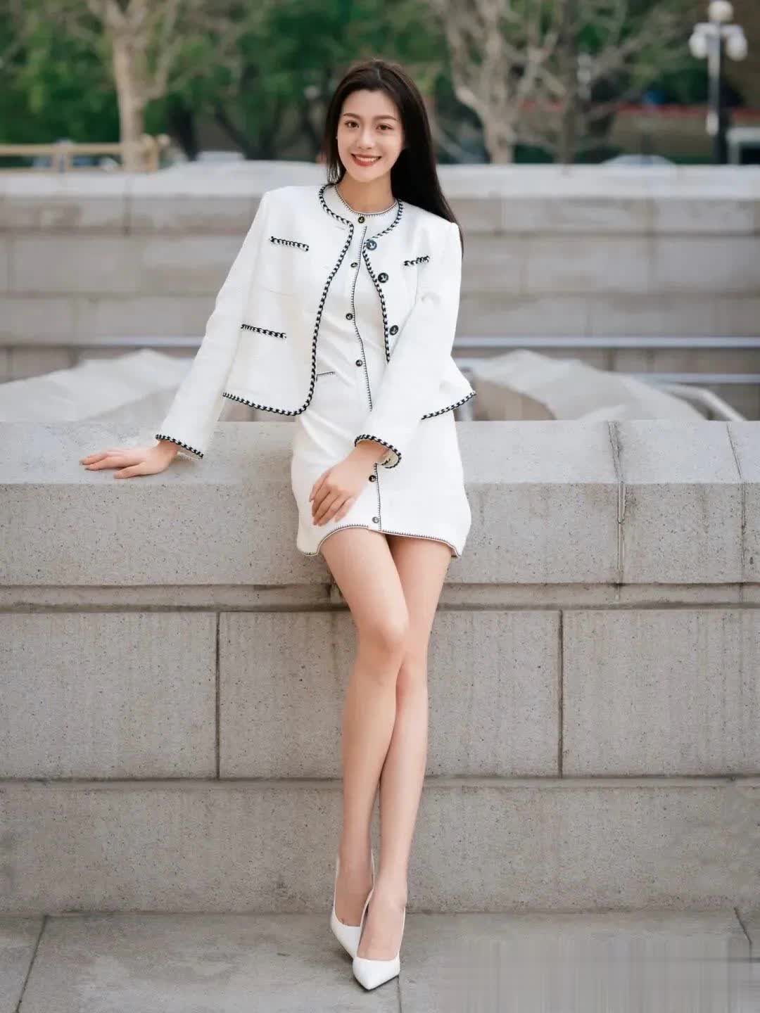 2️⃣ 交叉腿撩发:交叉腿站立,搭配抬手撩发动作,展现优雅魅力,自然高挑感和女性气质并存。